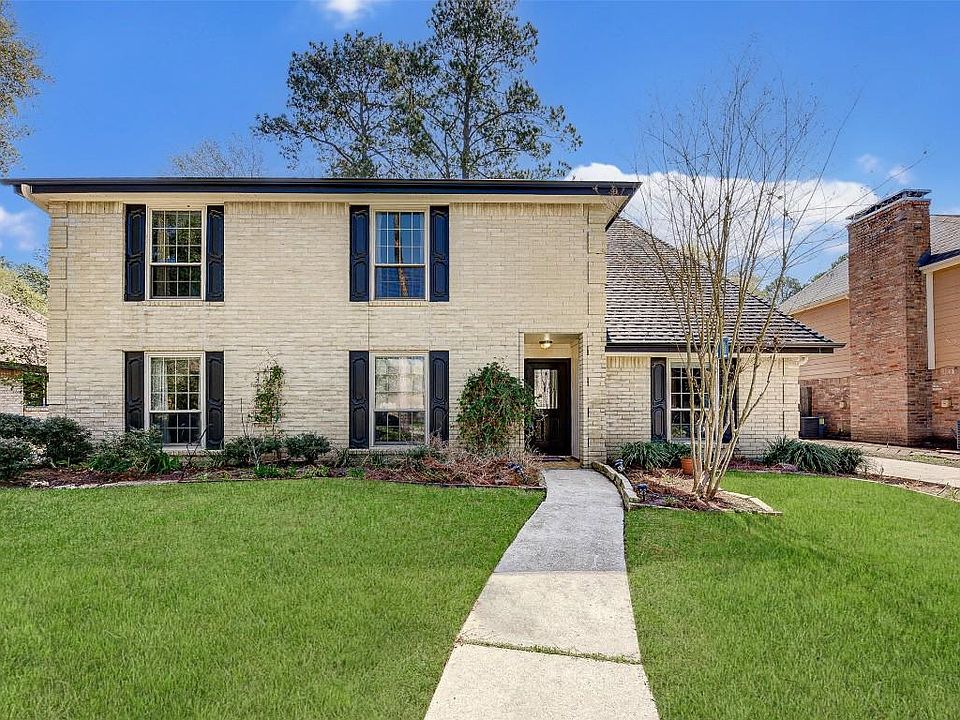 This white brick traditional home is a perfect blend of modern updates and traditional charm. The interior boasts a stunning kitchen with upgraded Appliances *Quartz*Tile backsplash+ Wonderful High end cabinets! Primary master suite with a luxurious executive bath, and a spacious walk-in closet. Additional features include a large den with a charming brick fireplace, formal dining room, formal living/study area, and a massive game room. The home offers fresh interior painted and set on a serene and wooded lot, providing the perfect escape from daily life + Awesome Wood Tile Thru-out most of the Downstairs! This home truly has everything you need to relax and entertain guests. Schedule a viewing today and see for yourself why this home is truly something special.