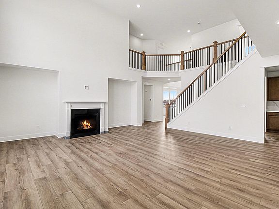 The home features a welcoming two-story foyer and an open floor plan ideal for comfortable living and entertaining. The two-story living room offers abundant natural light and a fireplace. The kitchen includes premium appliances, a large center island, and a butler's pantry, with easy flow to the living and dining areas.