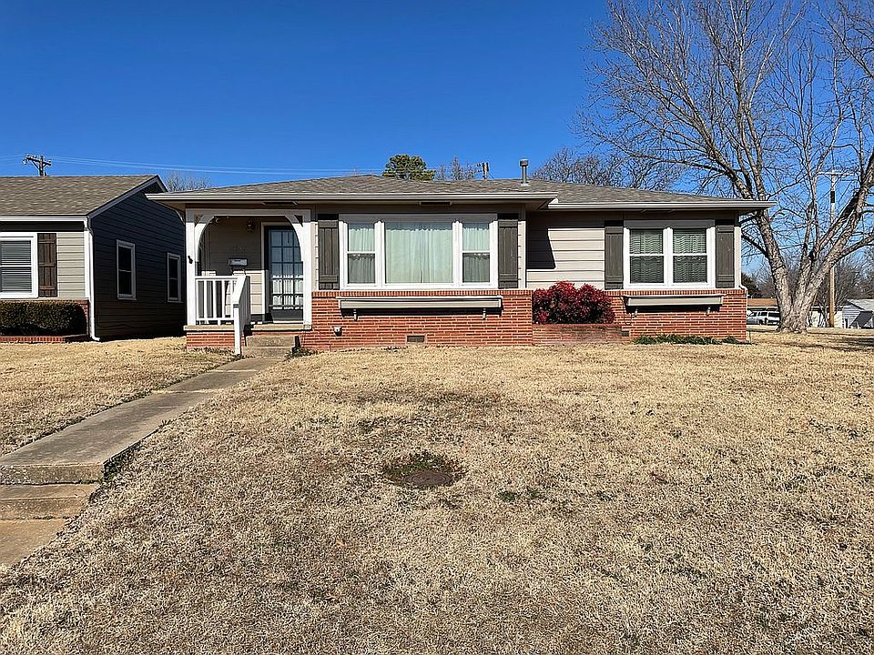 Updated 3Bed/1Bath Midtown Ranch on corner lot. Eat-in Kitchen with granite countertops, stainless appliances, hardwood floors, sun room, updated windows, attic fan, side entry two-car garage, carport, privacy fence, new 30 year roof installed summer of 2021 with transferable warranty.