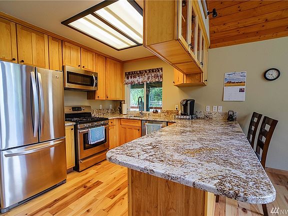 This 3 acre estate with over 2,100 sq. ft has 2 bedrooms, 1.5 bath with a separate ADU 392 sf & additional 3/4 bath. The home has been freshly remodeled with over 50k in upgrades to include, hardwood floors, new surfaces, doors, molding and much more. The heated garage is over 6,320 sq ft (40 by 100 with kickouts) has tons of space to work inside all year around. This home makes the perfect place to snowmobile in/out, ATV, & much more summer/winter fun. It is only an hr from Seattle, exit 70.