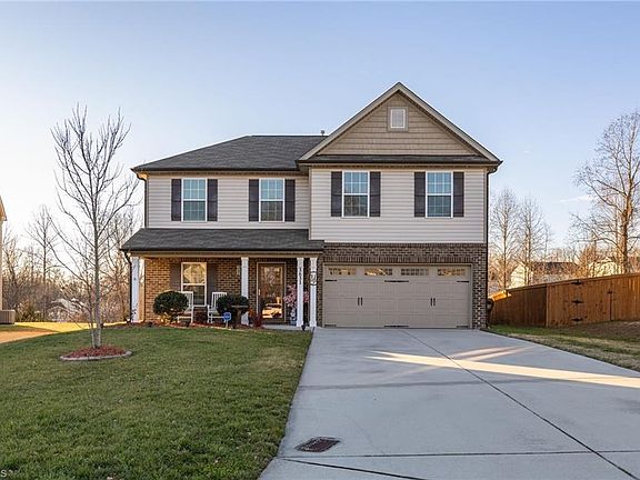 New Price and Open House 1/25 1-3PM! Nestled in a sought-after neighborhood on a serene cul-de-sac, this 3-bedroom, 2.5 bathroom home offers the perfect blend of comfort and style. Enjoy breathtaking sunset views from your backyard, complete with a covered deck, patio, and fenced-in area, the ideal spot for relaxing or entertaining. Inside, the open floor plan seamlessly connects the kitchen, dining room, and living room, where a striking stone fireplace creates a cozy spot. The home also features accent walls and stylish paint throughout, adding a unique touch of character. Upstairs, a spacious family room offers a versatile retreat for lounging or recreation. Conveniently located near all the Triad has to offer, this property combines modern living with easy access to shopping, dining, and entertainment.