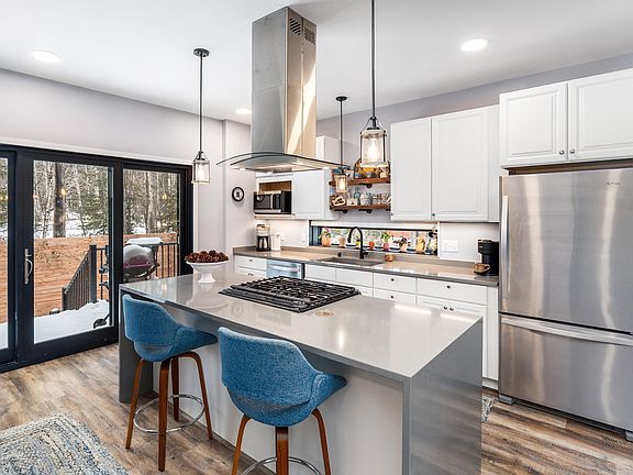 Privacy in a modern townhouse?! This unique London Rd townhouse boasts a double-wide wooded lot and bold exterior. Welcome guests in the large mudroom entry area, or enter through the convenient attached heated 2-car garage. You'll notice the stunning modern staircase on your way upstairs. This space was designed for easy living. Large sliding glass doors greet you on the main level, and from every window you see trees! The kitchen includes stainless appliances, gas stove, vent hood and bar seating, but it also includes a stunning backsplash window to illuminate the kitchen countertop. Pass the dining space on the way to curl up by the gas fireplace and cozy living room. Enjoy mornings greeted by a shimmering Lake Superior on the front patio, or evenings on your fenced back deck. The main level is finished off with a half bath. Upstairs, you'll find 3 bedrooms and a laundry closet. The luxurious primary bedroom includes a large walk-in closet and private bathroom including a custom tile shower. The middle bedroom features an exposed architectural beam. The final bedroom includes a view of the backyard and forest behind. Enjoy the full common bath on the upper level, and the hallway closet includes a convenient washer and dryer. Outside is a low-maintenance exterior that is primarily handled by the HOA. Come explore this state-of-the-art newer construction home.