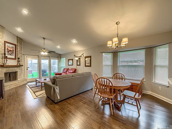 Fantastic 1 story home in an established neighborhood. Very close to the airport and main highways of 281 and 1604. Refrigerator stays with the home. Many upgrades see attached list. Two closets in the master bedroom. A/C has been maintained and working properly. Windows replaced approx 5 years ago. Foundation work paperwork available and warranty will transfer. Home will not last long so come and take a look. Showings allowed 10am to 7pm.$2500 for carpet replacement given at closing.