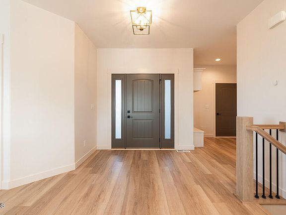 Step into the inviting foyer, guiding you into the expansive floor plan adorned with tall ceilings and an abundance of natural light. The main level features a convenient corner office and a half bathroom adjacent to the mudroom. The living room is a cozy retreat with a gas fireplace and a custom mantle, seamlessly connecting to the well-appointed kitchen. Revel in the kitchen's highlights, including a sizable center island, quartz countertops, under-cabinet lighting, a stylish tile backsplash, stainless steel appliances, and a generously sized walk-in pantry. The dining room, located beside the kitchen, opens to a large maintenance-free covered deck through a sliding glass door.