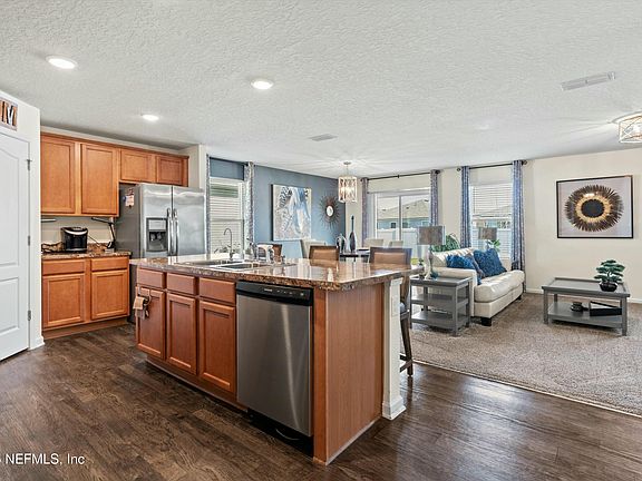 Welcome to Alta Lakes! This attractive residence shows like a model home, offering a custom color palette, split bedrooms, and open floor-plan. Fashionable kitchen overlooks the sizable living /dining area, great for any lifestyle. Roomy owners suite provides a fantastic ensuite including: garden tub with shower, and double vanity. The secondary bedrooms are spacious and offer privacy from the living area. Convenient proximity to I-95 & 295 for quick access to Jacksonville international airport, retail galore just 6.2 miles away at River City Marketplace, and less than 30 minutes to beaches & hospitals. Residents enjoy resort style amenities. Check out features sheet for home, community & location highlights.