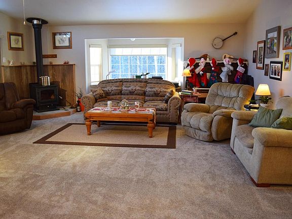 This spacious ranch home has so much to offer including covered front porch, large living room with wood stove, new carpet, abundant kitchen space, stainless appliances, generous bedrooms, hot water on demand, expansive lawn space, fire pit and an RV hookup! Circular drive with abundant parking for all your toys. Conveniently located off KGB on Fairview Loop and just minutes to the highway. Kitchen features include LG Stainless, gas stove with a power burner, solid surface Silestone Quartz countertops with matching backsplash. Abundant cabinets for deep pots. Glass front cabinets for display items. There is a 50 amp circuit off the pedestal with the RV hookup out back. Massive garage addition in 2004 .. 39'x35.5' and outfitted with oversized doors - attached to home. Laundry is currently in the garage, but there is also a laundry option in the hallway closet.