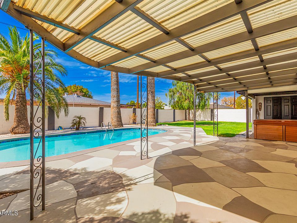 You will appreciate the nice-looking epoxy floor and pool in the back yard to entertain your guests. Spacious patio with a jacuzzi for relaxation.