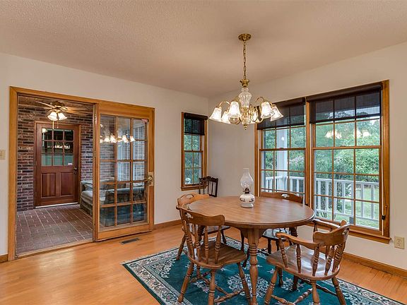 Travel the long private drive while enjoying the beauty of the rolling lawn and trees to the front of this 3 Br / 2.5 Ba / 2 Garage home. Enter through the breeze way into the nice open kitchen. Kitchen features an island with stove cooktop, lots of natural wood cabinets, and dining area. Black side-by-side refrigerator, range, microwave and dishwasher complement the natural wood nicely. Enter the living room to realize the beautiful hardwood floors, large brick wood burning fireplace/mantle and open view to the screened porch area. Continue on to the Master Bedroom or take the staircase upstairs to the two large bedrooms. Master Bath features a shower with glass doors and a soaking tub with view of the nature of the back yard. Exterior features a large unique two-tier deck with hot tub, lots of sitting and dining area. Deck area is naturally shaded with exits to the back yard and a walkway to the garage and large barn. The front of the home has a large 5.5 x 28 ft covered porch. Down the stairs to take a swim in the 18 x 36 in ground swimming pool! In front of the home there is 4.4 acres and 9.4 acres behind with a large portion that is fenced for your children and/or pets to enjoy. Barn is a magnificent rough sawn oak 37 ft x 30 ft building with large doors and electricity. Barn can be used for horses or other animals and front 4.4 acres can be easily fenced for pasture. Acreage behind the home consists of large hardwoods and flowing water creek! Two car garage has a large workshop and lots of storage. This home and property is a must see!