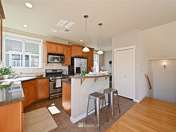 Just 3 1/2 blocks up from Gasworks Park. Conveniently located to bus lines to d.town & SLU, and views of fab 4th of July fireworks! This TH features 2 bedroom suites w/ their own private bathrooms, PLUS an office area that allows you to work from home without taking space away from your bedrooms. Southern exposure for abundant natural light. In addition, this home features a true 2-car garage that can truly fit two cars. Freshly painted and in great condition, you can enjoy the peek-a-boo views of d.town Seattle from the top floor. The home features HW floors, vaulted ceilings, skylights, big rooms, gas FP, gourmet kit w/ gas stove & SS apps & powder room on the main. Don’t miss the outdoor patio area entertaining & for summer barbecues.