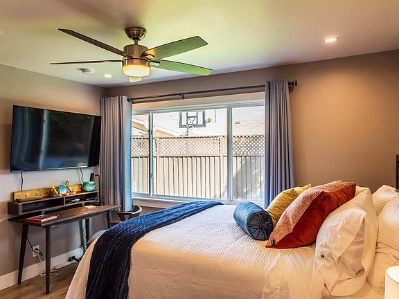 Offering this fully furnished newly remodeled mini studio for short term stays from 1 month. Perfect for corporate travelers who don't want to be in a hotel and prefer the cozy aspects of home. Super fast 1 GIG (1 Gpbs) internet service so you can have Zoom or other online meetings and not worry about internet speed. Located in a quiet neighborhood with parks and close to major tech companies, shopping, restaurants and freeways. Available November 1st. All utilities included. 1 GIG high speed internet service Xfinity. Separate gated entrance for privacy and security. High quality Sterns and Foster queen bed and 100% cotton sheets. Kitchenette includes dishes, cute fridge, microwave and coffee maker. Remodeled European spa style bathroom with large walk in shower, custom tiles, floating vanity and led mirror. Includes hairdryer, towels, and soap and shampoo. Central Heat, Air Conditioning and ceiling fan. Beautiful mid-century real wood desk and chair. 55" Smart 4k TV with Xfinity cable. Lots of storage and 2 large closets and a chest of drawers. Plenty of parking. Extra options for use of washer and dryer and professional cleaning services. Must be a dog lover.... you get to share the back yard with our frisky whippet pups. Contact Jennifer Evans Furnished Unit. Owner pays all utilities and internet. Short term lease available. Fast Internet for work from home.