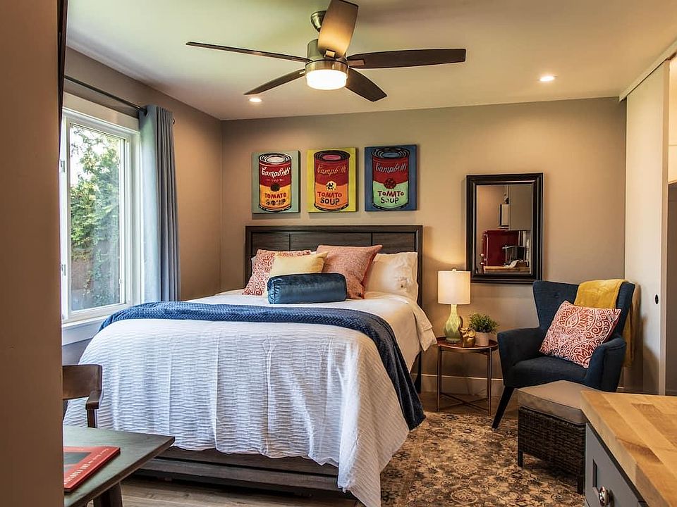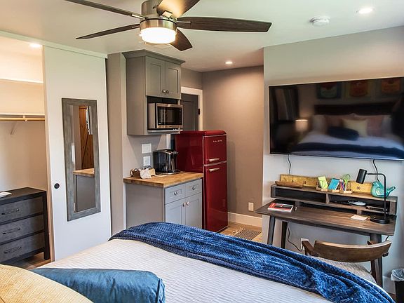 • Exterior features: Coffee Maker, High-speed Internet Ready, Internet included in rent, Iron and Ironing Board, Lux Queen Bed with 100% Cotton Bedding, Private Entrance, Utilities included in rent