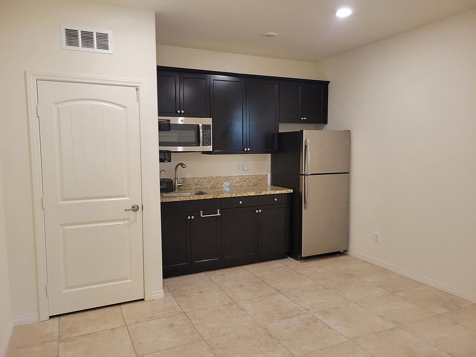 This one-bedroom, one-bathroom Casita in Wildomar has it's own entrance. The kitchen has granite counters and a full-sized refrigerator as well as a convection microwave. The living room is spacious, and the bedroom fits a Cal King bed. Plantation Shutters throughout. There is a stackable washer/dryer included. Water, electric, and trash are included. Street parking only. Tenant to get their own P.O. Box for mail. Additional $400.00 pet deposit if pet approved by owner. Qualifications: Income must be 2.5 times the rent. No evictions. No more than 3 negative items on credit report. No late rent payments in the past 2 years.