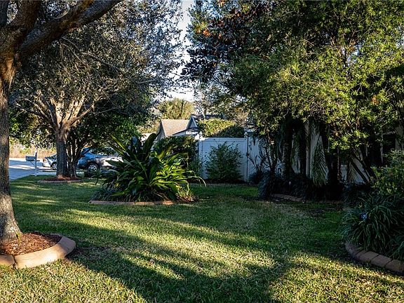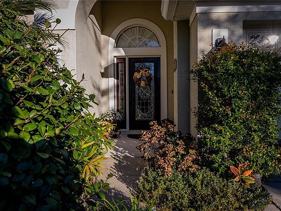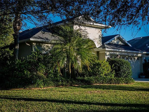PRISTINE Move in Ready 3 bedroom 2 bath/den open floor plan home loaded with upgrades is ready for the buyer who has an eye for quality and value. With its low HOA and NO CDD, this one won't last. Tucked on mature corner lot with its lush landscaping, private fenced patio, screened lanai ,hot tub and imported water fountain this home is a residential sanctuary. Pride of ownership is evident in every corner of this lovingly maintained home. This freshly painted home is chock full of upgrades- high coffered lit ceilings, crown molding in every room ,quartz counters/backsplash, stainless appliances, custom fireplace/mantle framed tv enclosure, plantation shutters, custom shelving in every closet, new hot water heater and newer roof .. Homeowner spared little expense on the upgrades here! Home Warranty in place and is transferrable. Make an appointment today and see for yourself before it is gone!