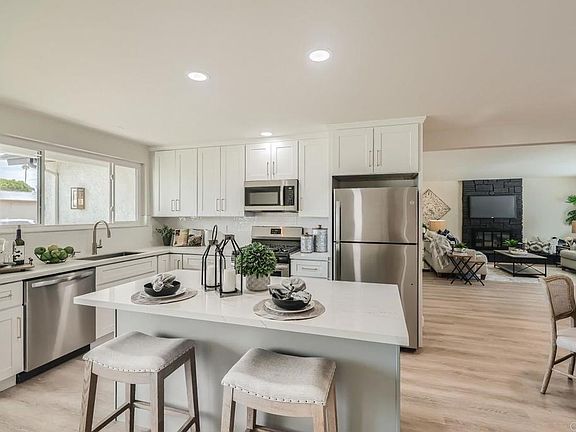 Freshly renovated idyllic California ranch home located in a quiet neighborhood close to everything San Diego has to offer. You will enjoy the bright open floor plan that effortlessly flows from one room to another featuring a new kitchen and appliances, new bathrooms, new flooring and paint throughout along with beautiful designer finishes to name just a few of the highlights. Beautiful reimagined Master Bedroom with private attached ensuite. Central A/C and a new roof to keep the temperature down in the hot summer months. OVERSIZED private backyard with additional boat or RV parking. This home has it all! SELLER FINANCING AVAILABLE!