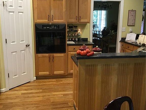 - Kitchen Features: Breakfast Bar, Cabinets Stain, Eat-in Kitchen, View to Family Room, Kitchen Island, Pantry Walk-In, Breakfast Room, Solid Surface Counters