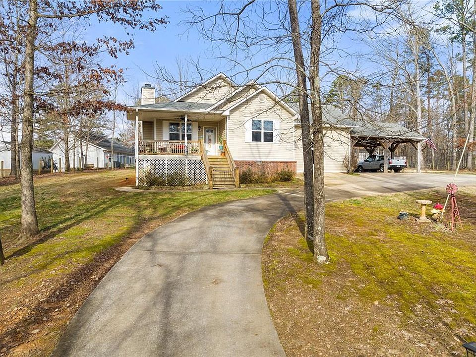 Charming 3/2 all on ONE LEVEL home with beautiful fenced yard. This home features a cozy front wrap around covered porch with a great space for reading and relaxing. As you enter the home the spacious high ceilings give you an open airy feeling. The large granite kitchen is open to the family room. The family room has a decorative fireplace and nice hardwood flooring that continues into the kitchen and dining areas. The kitchen and family room features beautiful shiplap wooden walls. The bedrooms have newer stainmaster carpet that is almost new and has been pristinely cared for. Both baths have tile flooring and are spacious. The master has a double sink vanity and the shower has been updated to a large stepless shower. There is a bonus fully finished space that was previously the 2 car garage -- which is now a great space for a project room, home gym, area for pets or kids to play. It's a large multi-purpose room that gives you so many options. The 2 car carport is a beautiful newer construction that is attached to the home. Yard is very user friendly -- and even has a concrete pad that would be a great foundation for a future shop in the back yard. Located in a great part of White County - with lots of wildlife in your backyard.