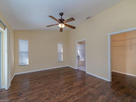 Updated 3bd / 2ba home with vaulted ceilings, hardwood floors throughout main living area and master bedroom, stainless steel kitchen appliances, screened lanai with enough yard space for you and your family to enjoy. Security system available but activation required. Lucky's Market along with local shops, dining and theater nearby and a short drive to downtown and Naples beach.