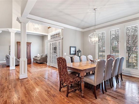 Beautiful wood floors lead to fml dining and fml sitting just off front door with magnificent office beyond double staircase. Kitchen features double oven, pantry, island and opens to living room and nook with windows that gaze upon the large decks overlooking heated pool w/ hot tub, basketball court and pro landscaping. Attached pool house has wet bar and bathroom w/ exterior door for use by pool guests. Large master and guest room on main w/ 2 more bedrooms, craft room, walk in attic & gameroom upstairs