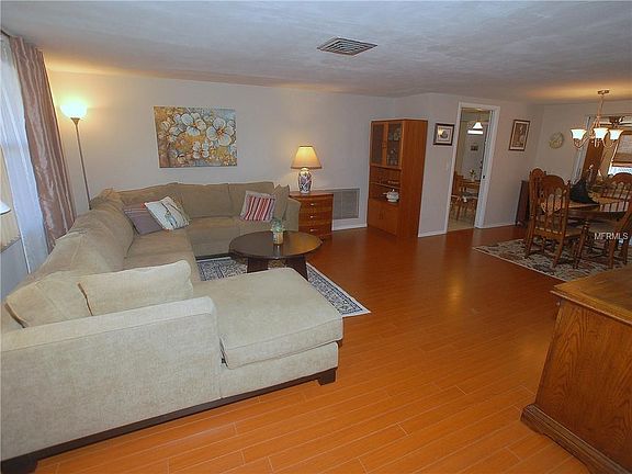 Nice! Nice! Nice! This lovely, move-in ready home sits on a street with sparse traffic in a NON-flood zone. It features a captivating curb appeal with circular driveway and 2-car parking pad. The interior offers a bright, open floor plan that includes the following: inviting foyer, large formal living room, separate formal dining area, galley kitchen with breakfast nook, master bedroom with walk-in closet & private full bath, guest or 2nd bedroom, updated hall bath, spacious family room, PLUS an oversized 1-car garage with full size washer/dryer and unfinished 1/2 bath. The exterior features xeriscaped front & rear yards, a 21' front porch, a relaxing rear screened porch, a paved patio, a storage shed, plus a fenced back yard. Property has been updated with, KITCHEN: formica counters with beveled edge, tiled backsplash, appliances, stainless sink & faucet, HALL BATH: vanity, faucet, mirror, toilet, showerhead & refinished tub, MASTER BATH: toilet & showerhead, HOME: efficient wood laminate flooring, windows, assorted light fixtures & ceiling fans, family room window shades, water softener, A/C system (3 years old), plus fresh paint... Property is ideally located in Colonial Hills which sits between the downtown waterways of New Port Richey and the Historic Sponge Docks of Tarpon Springs. It's also a short drive from countless shopping centers, supermarkets, fine restaurants & Gulf View Mall. This is a MUST SEE for buyers seeking a clean, move-in ready, 2BR/2BA home in a convenient location.