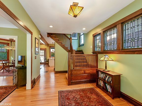 Immaculate light filled craftsmen home on a 50x136 lot located in The Villa section of exploding Old Irving Park. Walking distance to both blue line and metra, the stunning home sits on a picturesque tree-lined boulevard street in landmarked district. Upon entry, you are greeted by a stately foyer accompanied by elegant staircase & stained glass windows, leading to an expansive main level with living room, formal dining room that open's custom chef's kitchen. Just off kitchen is a powder rm & access to back deck with pergola that leads to luscious backyard with brick-paved pathways, 2 patios, and 2-car garage that opens up to alley & backyard, allowing for seamless entertaining. Beautifully detailed restoration of original woodwork throughout the main and 2nd levels boasts historic charm. 2nd level has 3 generous bedrooms & stunning marble bath. 3rd level is unfinished but plumbed for luxe mstr suite & bathroom. LL offers spacious family rm, laundry rm, half bath, and storage.