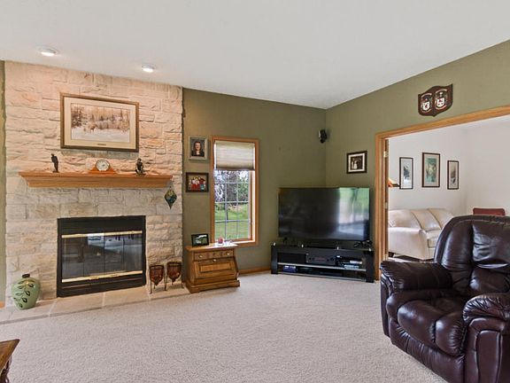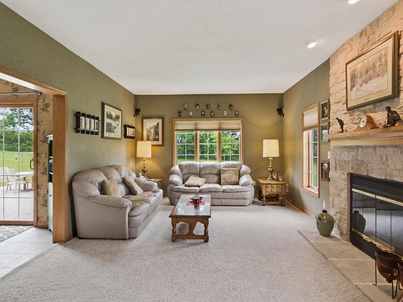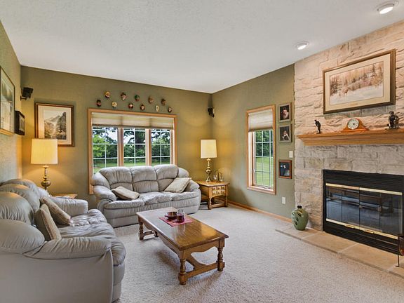 Custom built 2 story, 3 bdrm brick home nestled on 5.1 acres! Enjoy hosting family gatherings in this kitchen/dinette offering tile, granite. hickory cabinetry, legacy stove, w/chefs venting over stove, & breakfest bar. Gas fireplace in family rm separates the living rm w/french doors. Master bdrm with trey ceiling, WIC. Master bath w/jacuzzi tub, shower, tile, double sinks & granite. Open loft area. Studded walls in LL with finished full bath, walk-out stairs to garage & egress window. Zoned heating & cooling. Heated 3 car garage. Cleary pole barn 30x54 (1620 sq ft). Stamped concrete patio.