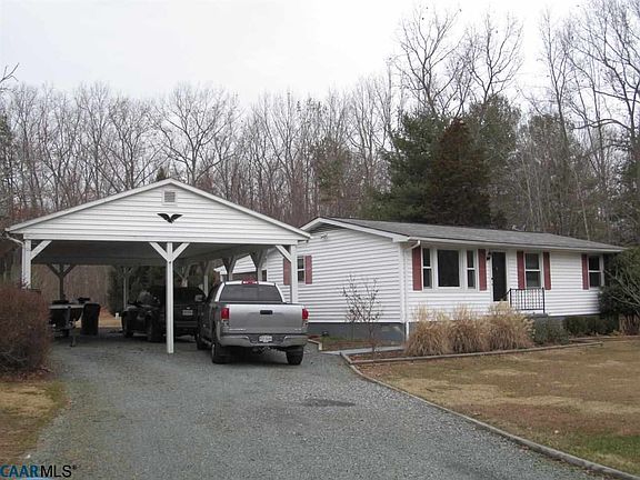 Sweet home in the country - 20 minutes to Charlottesville, this cozy ranch on 2 acres has privacy with a community feel. Stroll the woods, garden, horse shoes, great yard for pets and play. Home shows very well, seller has made upgrades to flooring and appliances and more. Large eat in kitchen, laminate floors in living room. Separate laundry area. Encapsulated crawl space improves efficiency. The enclosed sun porch adds terrific space for entertaining and outdoor access. Great potential to expand with addition here. Huge multi vehicle carport, detached garage, good sized shed make for convenient storage. Nice Set up. No restrictions, No HOA.