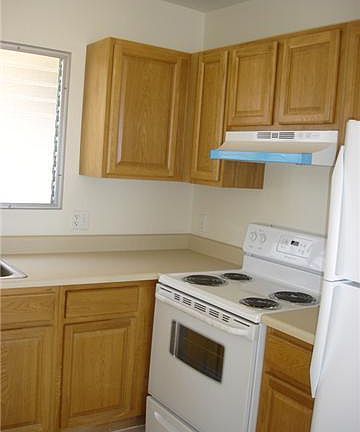 Concrete block, ground floor unit, 2-bedroom, one bath. One assigned parking 10 feet from unit's front door. In-unit full size washer/dryer, A/C, ceilings fans (3), security screen door, tankless water heater, range/oven/vent fan, solid wood cabinets, ceramic tiles throughout, refrigerator. Additional parking on-street. Approx. 600 square feet of living area. Close to H-1/H-3 Freeways, Honolulu International Airport, Pearl Harbor Makalapa Gate, Navy Exchange (NEX), Target, Stadium Mall, and Ice Palace. 26 minutes to Marine Corp Air Station Kaneohe, Public schools: Aliamanu Elem and Intermediate, Radford High. Bus stop for Route 32 to Middle Street Transit station or Pearl Ridge Mall only 3-minute walk from unit. No smoking or vaping. Zillow applications accepted. Required: full credit report and paystubs or BAH statement if military. Water and sewer included.