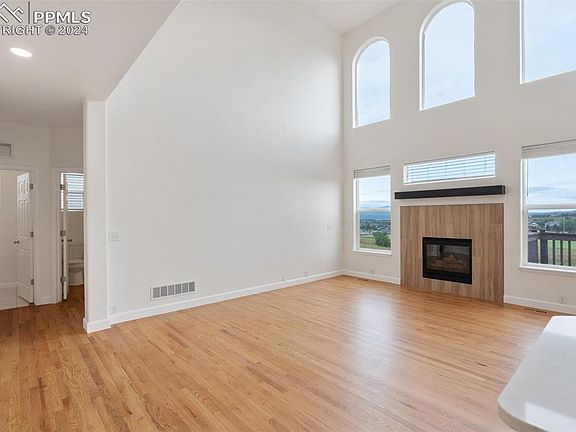 Welcome to this Summerfield Stunner! This home sits on an immaculate lot w/mountain views, backs to an open field and offers a completely updated interior. The Seller has put much love and care into updating and taking care of this home. The newly refinished hardwood floors greet you as you walk into the home and guide you throughout the entire main and upper levels. The office/dining room greets you off the entry w/access to the Kitchen updated w/brand new quartz countertops, stainless steel appliances, new granite sink, new electric cooktop and newly remodeled island now offering an oversized sit-up Kitchen breakfast bar! The eat-in nook and walk out to the composite deck complete this beautiful Kitchen! Adjacent to the Kitchen is the Main Level Family Room w/a newly designed tile surrounding the gas fireplace and sky-high ceiling w/floor-to-ceiling windows - amazing natural light throughout this main level! A main level bedroom, 1/2 bath, laundry room w/shelving and garage access completes this main level! The newly refinished flooring continues up the newly built stair case into the upper level loft space. Three guest bedrooms are shown off of the upper level loft along w/a full bathroom w/updated countertops, mirror and light fixture. The master bedroom opens on the upper level w/double door entry, new light fixture and an adjacent 5-piece remodeled master bathroom. Double vanity w/brand new quartz countertops, sinks, plumbing fixtures, mirrors and light fixtures - it's beautiful! The basement shines with another guest bedroom, full bathroom, 2 storage spaces and a bonus room! Complete with a walk out to the oversized patio and fully fenced in backyard - this home truly has it all! Additional features include: 2023 roof, 2022 furnace and central air conditioning, 2023 water heater. Backing to open space with amazing views in the desirable Summerfield neighborhood in Award Winning Academy School District 20!