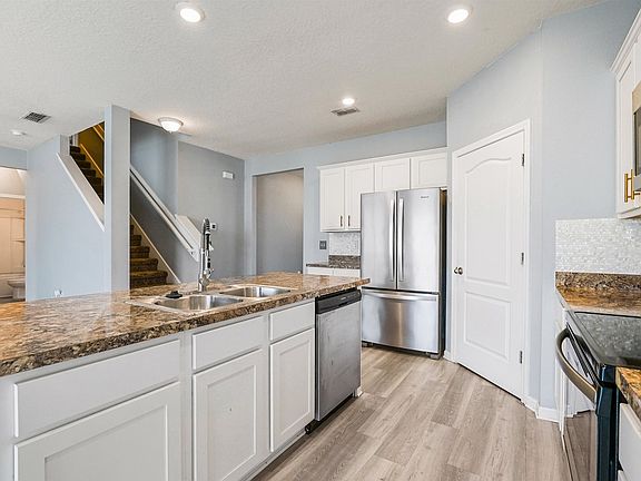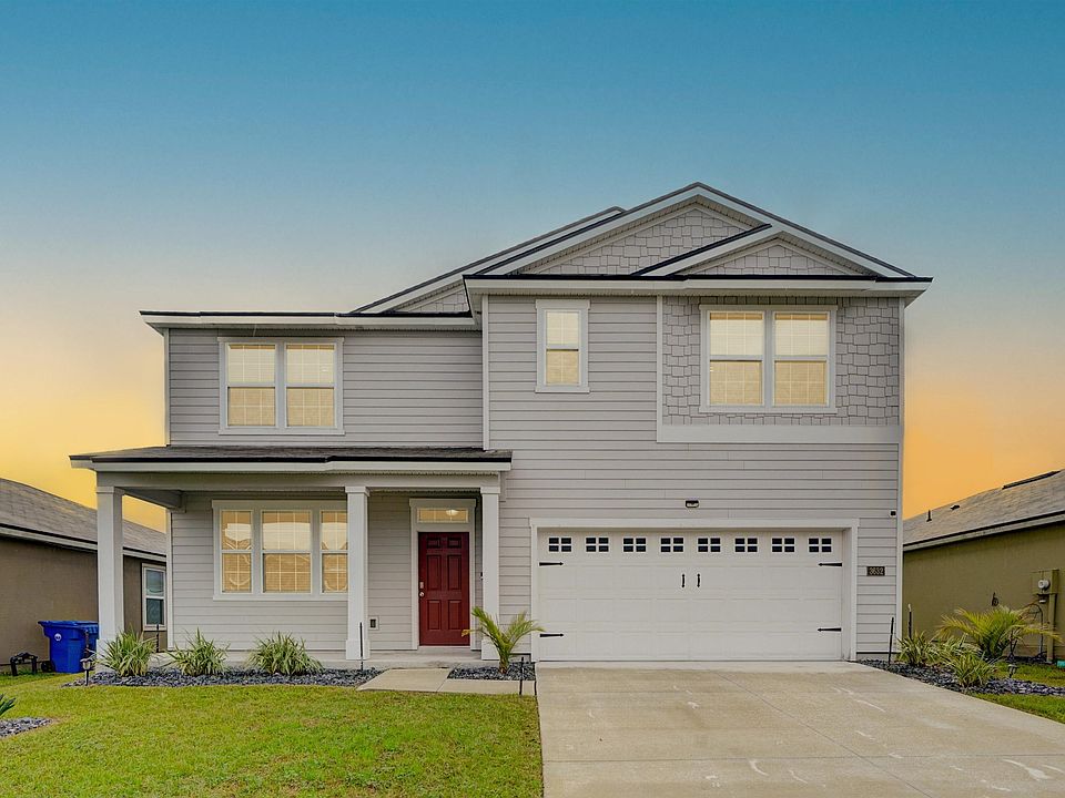 Located in the highly desirable neighborhood of Alta Lakes, this stunning residence boasts a generous 2,517 square feet of living space, providing ample room for comfortable and luxurious living. The current VA loan is Assumable at a 2.99% for eligible VA buyers. This 5 bedroom 3 bathroom home has a formal dining/office area upon entering the home which leads you to the open floor plan kitchen and living room area. Off of the living room you have a guest bedroom and bathroom. Upstairs you have a loft area, 4 bedrooms and 2 bathroom including the spacious master suite. Backyard is fully fenced and perfect for entertaining. The community is centrally located to the airport, military bases, nearby shopping, highways, beaches, Publix and other home goods stores. Alta Lakes has a plethora of amenities including a community pool, gym, playground, pickle ball courts, soccer field volley ball and miles of bike lanes.