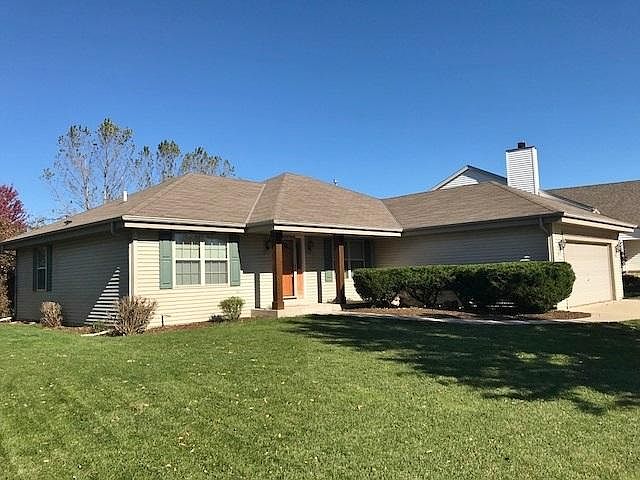 Large, private lot is extra deep and offered by the original owner. Desirable-hard to find split floorplan ranch with master on one side is move in ready. Raised oak panel cabinetry with pull out drawers. Dinette area currently extends the living center to patio doors opening onto BIG concrete patio and expansive backyard with wooded backdrop. Master suite has step-in shower and jetted tub plus walk-in closet. Main floor laundry, 8' ceilings and large open basement space with 8' ceilings and poured walls. Hi-efficient furnace, includes water softener. Neutral decor, clean woodwork-this home is ready to unpack and move in. Concrete driveway with additional car parking.