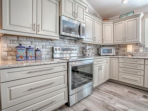Under contract-accepting backup offers. Beautifully Designed & Updated Anna Maria Courtyard Villa in the Village of Dunedin! From the moment you arrive, you will be impressed! Located on a Premium Corner Lot with Low Maintenance Floridian Landscaping, PRIVACY & Expansive Outdoor Space. There is room for a small pool OR Golf Cart Garage, if desired. This STUNNING 3-bedroom, 2-bathroom home offers approx. 1,600 square feet of beautifully designed living space, plus a GLASS ENCLOSED LANAI, perfect for entertaining or relaxing in privacy. The Main Living Area, Primary Bedroom, & Enclosed Lanai feature Wood-Look TILE Flooring. The Light & Bright OPEN CONCEPT FLOOR PLAN offers Volume Ceilings, Plantation Shutters & Crown Molding. The REMODELED KITCHEN is a Dream with Updated Soft-Close Cabinetry & Stylish Hardware, GRANITE Counters, Timeless Complementary Backsplash, Center Island and updated Stainless Steel Appliances! The Large Primary Ensuite accommodates your King-sized furniture, has Granite Counters and a Walk in Shower. The Secondary Bedrooms are located in the front of the home away from the Primary Suite, both have closets and cozy carpet. The Guest Bath has Granite topped Vanity and tub/shower combo. Additional highlights include: **NEW ROOF SCHEDULED** Brand New Washer/Dryer, Screened-in Oversized Front Porch, Powered Screen Garage Door, Pull Down Attic Ladder, a Termite Bond. HVAC 2014 with new capacitor, HWH 2020. Whether you're relaxing inside or enjoying the expansive outdoor area, this home offers the perfect setting for Florida living at its finest. The Village of Dunedin is nestled between Brownwood Paddock Square and Lake Sumter Landing. Whether it's golf, recreation, shopping or dining that you desire, it's all available! You'll enjoy quick access to either Buena Vista or Morse Boulevard too, for those days that your adventures take you beyond all the amenities you already enjoy!
