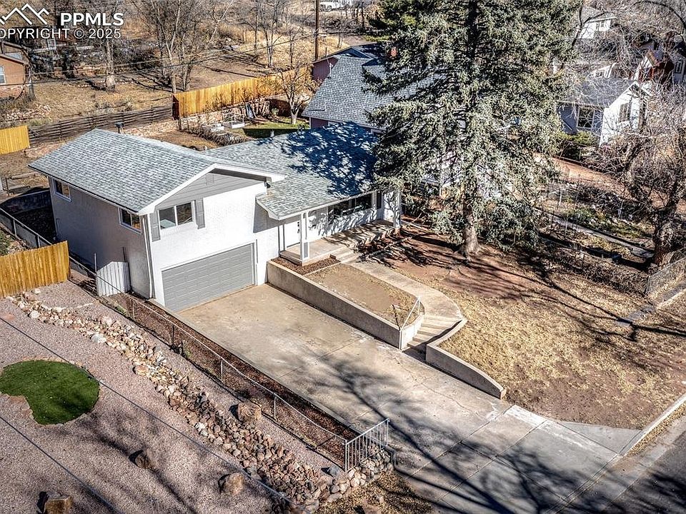 Highly desirable westside neighborhood just within minutes to a direct access into "Garden of the Gods", whether by foot, bike or car, this location is absolutely fabulous ! This very unique home sits on a no-outlet street, tucked between Manitou Springs, Old Colorado City, and Garden of the Gods park and provides access to all that Garden of the Gods has to offer, such hiking, biking or horseback. Trailheads are only minutes away and only 1.5 miles to the main Garden of the Gods by trail. Enjoy lots of natural wildlife in the area, including turkey, bear, and deer. Step inside and discover exquisite 65-year-old refinished hardwood floors on the main and upper level, plus a generously sized living area, dining area and a gorgeous new kitchen with center island, brand new appliances and convenient walk-out to the backyard. Up seven steps and you will find a spacious primary bedrooms, a secondary bedroom and a beautifully updated, spacious 4-piece full bath with double vanities ! In addition, enjoy a fully finished basement that can be accessed through the garage, featuring a spacious family room, 2 additional bedrooms and a 3/4 bath, which could be perfect for mother-in law suite, a short term rental (as long as you occupy a part of the home) or a long term rental, if desired !!!