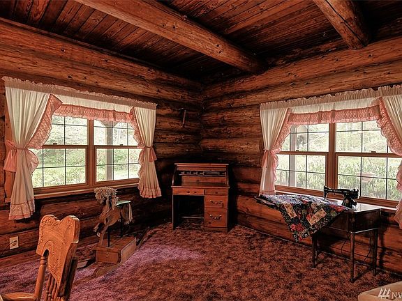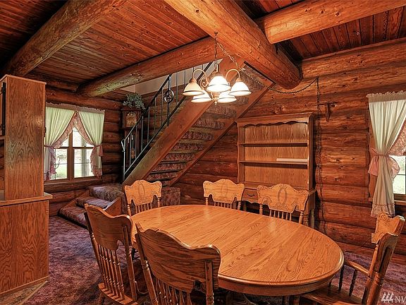 Custom log home on over 5 acres, your own private retreat away from it all! This home was lovingly built in 1988, 3 bedroom/2.25 bath - as you enter you are greeted with a giant stone fireplace that continues up to the master on the second floor. Living room and dining room are spacious and open, kitchen has all the modern conveniences and an antique wood stove. Master has it's own bathroom. Wrap around porch gives you a place to admire the beautifully wooded, secluded five acre lot. Come see. .