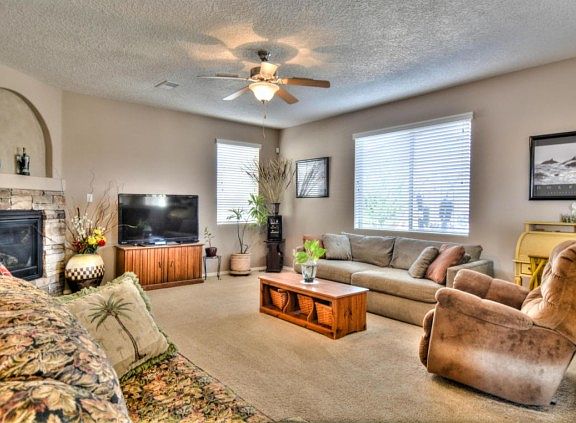 This once Model Home for D.R. Horton has all the refinement of a model home plus some extras added. New Lighting fixtures provide for an inviting and elegant bonus to the home. The Landscape is amazing with both the front and back completed. The Open Concept from the family room to the kitchen is perfect for entertaining. Also the Loft provides additional living area that is perfect for setting up a secondary relaxation zone. This home is close to parks for both humans and dogs to enjoy. This is a great opportunity to own a great home.