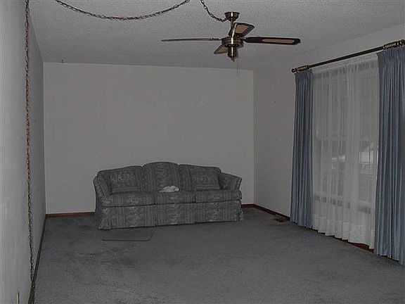 Sliding patio doors out of DR - covered wood patio - water softner stays - storage shed stays. Attic entrance in garage - elec furnace in attic was disconnected when gas furnace was installed.