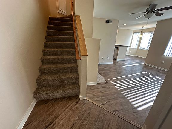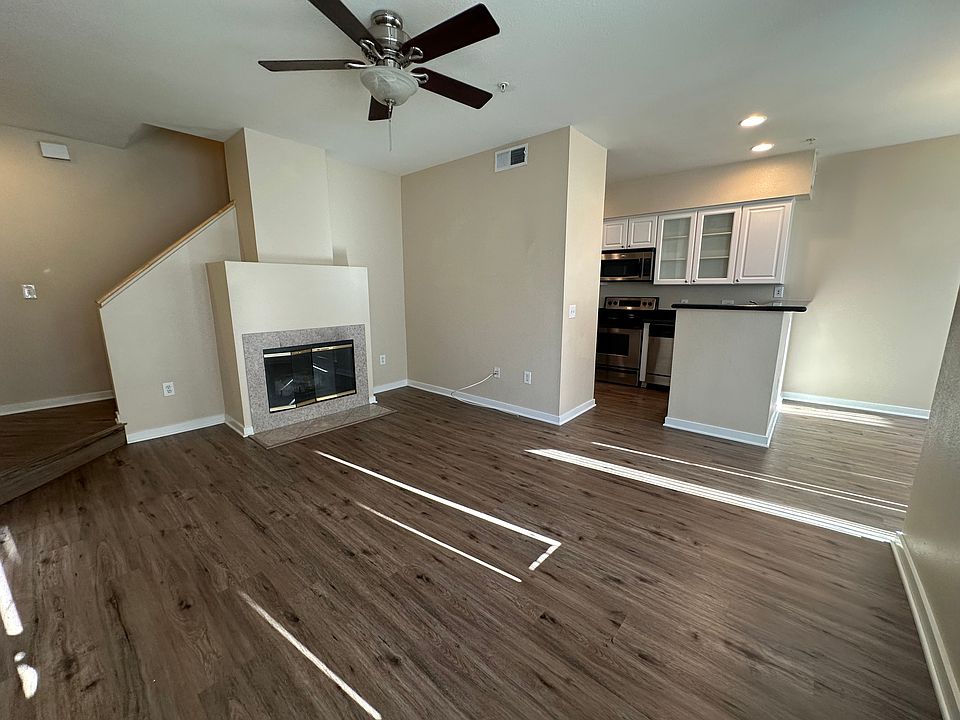 Two bedroom, two bath unit with granite counter tops, stainless steel appliances, carpeted bedrooms, fireplace, walk-in closets and inside laundry with washer and dryer included! Unit has detached single car garage. Just steps from the Fitness Center and Pool/Spa. Close to light rail and downtown venues.