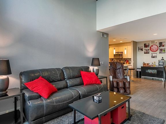 Midtown condo you won't want to miss! It has everything you are looking for in a central location. The open floorplan has been beautifully updated with grey wood plank tile, white quartz countertops and cabinets, stainless steel appliances, wonderful fireplace, two spectacular bathrooms, and an attached garage. The great room brings in a ton of natural light. You'll love the separate level master bedroom, bathroom, walk-in closet, and private balcony after a long day. An additional loft is great for a home office with lots of natural light. The main level has another oversized bedroom with a walk-in closet and access to another private balcony shared with the great room. The gated community features a clubhouse, heated pool and spa, and a fitness center. You won't be disappointed!