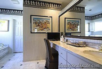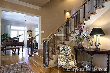 Elegantly designed. Doors from France cir.1860 (per owner) provide a private entry and landscaped New Orleans style courtyard with decorative stone fountain. Special features include 3 fireplaces, 2 fireplace mantels from Europe cir. 1860 (per owner), Dutch doors with etched glass enclosing wet bar, luxurious master bedroom with fireplace, elevator, island kitchen to delight a chef, his and her separate baths, oversized garage, 2 studies and yard with patio off breakfast room.
