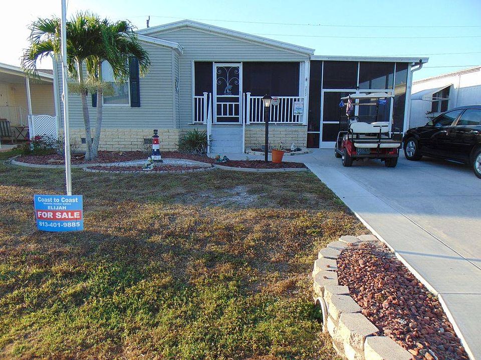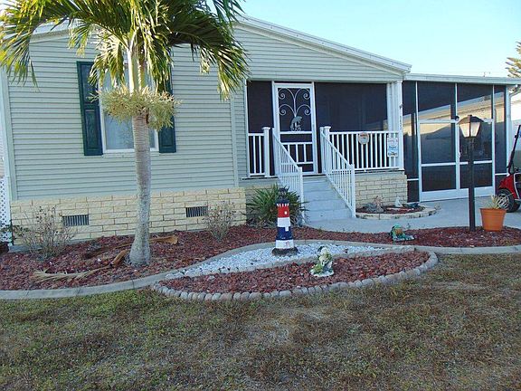 Large 3 bedroom, 2 baths, Inside just repainted professionally. Driveway holds 4 cars, Large screened in lanai and 12 x 15 screen and vinyl window lanai. The original House is 1565 sq. Ft plus 8x8 shed and 2 lanais totally over 2100 sq ft. also a 3 ft X8 Ft storage shed. City water and sewer, Comcast available in area. In El Jobean off Rt 776. Great fishing in lake.This is a Palm Harbor Manufactured home for sale in a beautiful community. This a 55 + active community with plenty of activities to enjoy. 2006 Palm Harbor 3 bedrooms, 2 bathroom and 2 lanais. We are a small community with onsite friendly management, pet friendly, 5500 SF clubhouse, heated pool & hot tub, shuffleboard court, horseshoe pits, RV & Boat storage, year round lawn care, planned activities. Close to shopping and beaches! Your lot rent includes, lawn care, garbage pickup, storage area, access to amenities, access to events & lot rent.
