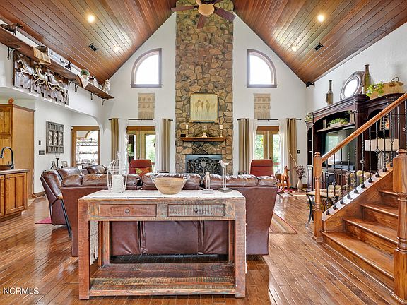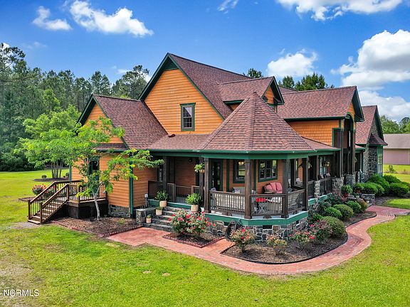 Welcome to this impressive home nestled on over 8 acres of beautifully maintained pastures surrounded by private woods. Sit and relax on the wrap-around porch or in the gazebo and enjoy the sounds of nature and the peace of country living. This home boasts great entertaining spaces with beautiful gleaming wood floors throughout most of the home a grand living room with 20' tall, vaulted ceiling, a stunning stone fireplace and hearth. The living room flows into the over-sized formal dining room with a cathedral ceiling. Main floor also includes additional den, powder room and 2 guest bedrooms and a shared full bath making this the perfect home for gathering family and friends. From the living room you enter the gourmet farmhouse style kitchen, beautifully designed with solid wood custom cabinets, copper farmhouse & prep sinks, butler's pantry, industrial side by side glass door refrigerator, chef's gas range with copper hood, double ovens, ceramic tile countertops, large breakfast nook, storage pantry and a custom wine rack. The main Master Suite is located on the first floor and offers huge walk-in closet, double vanity, tub, custom tiled walk-in shower and a fully equipped hair dressing powder room! The second floor offers office space, a loft area and two additional private Master Suites with oversized closets and a walk-in attic space for additional storage. The large patio and gazebo invite you to come and enjoy a coffee in the morning or a cocktail in the evening while enjoying Southern Country Living at its best here on this stunning piece of paradise!