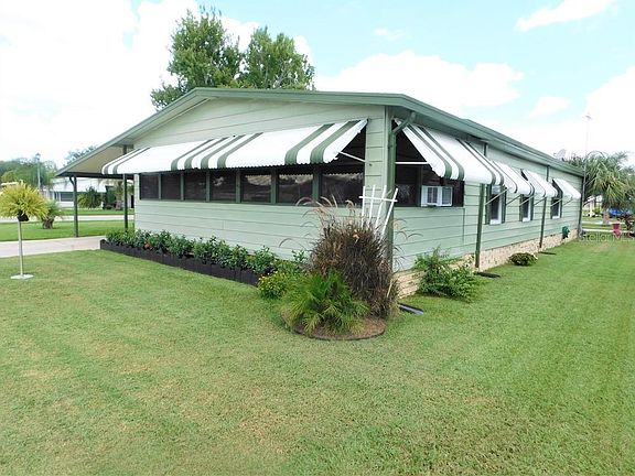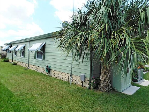 Looking for a forever home in Florida, or just a winter get-away? This 2BR/2BA Homes of Merit home is located in the active 55+ community of Oaks Royal III with a low HOA fee of $525/year. This unfurnished, 1344sq ft home abounds with updates throughout which include laminate flooring, freshly painted, ceiling fans, double-paned windows and new AC in 2018. The home has beautiful curb appeal that says "welcome" from the moment you see it. When you enter, you are greeted by a wonderful open floor plan that's perfect for entertaining. The kitchen offers newer appliances, ceiling fan, ample cupboard and counter space and a food pantry. The dining area has built-in china closet and flows nicely into the large living room. From the living room, you enter the Florida room which has carpeting, a ceiling fan, window AC unit and all the windows have been tinted for additional cooling. The master bedroom has a ceiling fan and large closet with two double doors for easy access. The master bathroom is located off of the master suite with step-in shower, oversized vanity and a closet for additional storage. The second bedroom is big enough for a king size bed. It also has a ceiling fan and two double closets. The guest bath has a ceiling fan, tub/shower combo, oversized vanity and a storage closet. The Laundry is located inside and has vinyl flooring and storage. If there's not enough storage inside, there is a 8x19 attached storage building with power, concrete floor, ceiling fan and two work benches. Your low annual fee gets you access to all the subdivision's amenities which includes access to pool, club house and community functions. Two pets permitted with limit. Call for an appointment today.