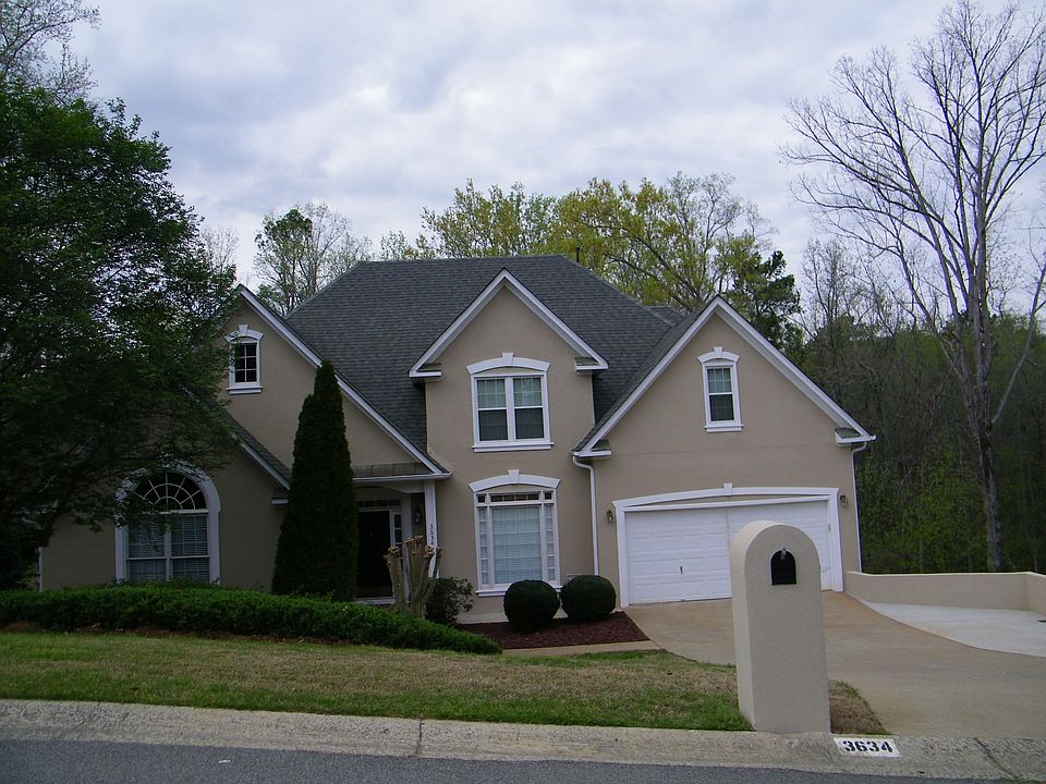 Excellent East Cobb school district and near Trendy Downtown Roswell. Beautiful 3-sided hard stucco, open floor plan, vaulted ceilings, excellent insulation, all 3 floors are zoned for heat/cool, Master bedroom on main with fireplace and jetted tub, 3 bedrooms upstairs share hall bath, 80% builder finished basement with 5th bedroom, bonus room, full bath, huge 700 sq.ft event room with wet bar, storage, 2 large 450 sq.ft decks with a private majestic view. Plenty of oak hardwood floors on main. Additional driveway for a third car, exotic fruit trees, large kitchen with granite counter tops, giant island, double convection oven, gas stove top, stainless steel appliances