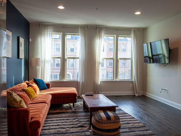 Welcome to this beautiful 4-level townhome in the desirable Fort Lincoln neighborhood fit for a family or groups of traveling to DC for work. The home includes 2 decks with fantastic views. The first floor welcomes you in with a sunroom/ media area and a half bathroom plus an entrance to your private garage with tons of extra storage. The second floor opens to a great layout with an inviting dining room that opens to a deck perfect for entertaining, a huge kitchen with both a peninsula and island providing plus room for seating & cooking, and a large living room with tons of light. The kitchen has beautiful marble countertops with white cabinets keeping the space bright and modern. The island & peninsula allow for enough space to cook up big meals & add the perfect separation from living spaces. The third level includes a premium owner's suite with beautiful large windows connected to an en suite bathroom with a big double vanity and a large walk-in closet with ample storage! The second bedroom at the other end of the floor can accommodate any guest. The 4th level can be dedicated to a whole entertainment space home office, or into a third-bedroom suite. A double vanity sink in the upper-level bathroom, as well as a walk-in closet, allows for extra storage space. The upper level features a stunning rooftop terrace with enough room for a grill and outdoor dining area. Just steps to the Shops at Dakota Crossing which feature Costco, PetSmart, Lowe's, restaurants, and more. Enjoy even more green space at Fort Lincoln Park. With the standard lease, the owner pays for all utilities: water, gas, wifi, and electricity. Home also comes with a built-in home security system and furnishings. Ideal tenants will be for the entire home. Alterations such as renting a single room can also be discussed.