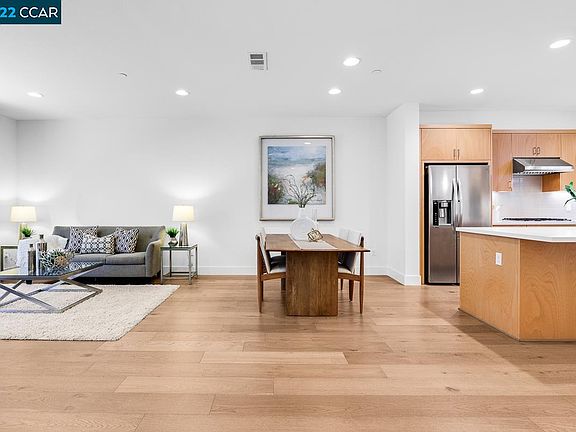 Welcome to this modern and stylish 3 bedroom, 3 ½ bath home - This Modern townhouse style is ideally located in the beautiful Locale @ State Street in the heart of Fremont's downtown district. This home is designed for comfort and style with an open floor plan, contemporary amenities, and everything you need without sacrificing quality. The main living floor offers a great room with a Chef’s kitchen with an abundance of cabinets, quartz counters, an expanded kitchen island, and stainless-steel Bosch appliances. The home is light and bright with beautiful European Oak floors, custom window coverings, recessed lights, raised panel doors, and inside laundry. The Primary Bedroom suite is contemporary, with a lovely main bathroom and a large walk-in closet with a built-in organizer. The bedrooms are spacious with private baths. This inviting home includes a bedroom with a full bath downstairs and a terrific patio for relaxing. This is one of the few homes with a 2-car garage with finished floors. This modern community is minutes from New Downtown District, Kaiser Medical, Washington Hospital, and Whole Foods; and is convenient to Facebook, Tesla, Ohlone College, schools, ACE train, BART, freeways, and easy access to Dumbarton Bridge leading straight to Menlo Park & Palo Alto