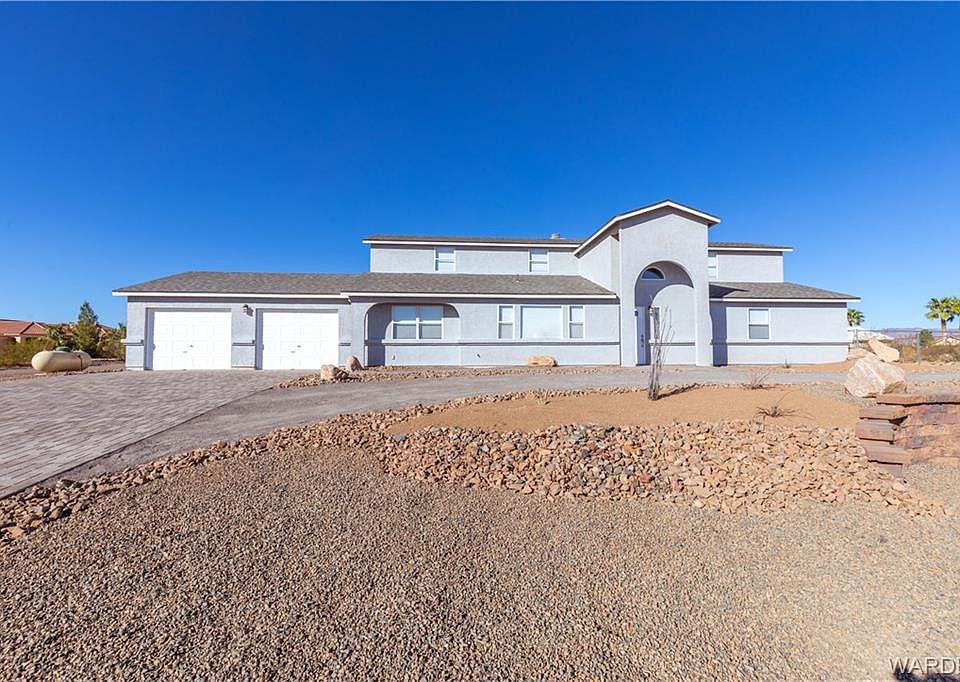 LARGE 0.57 ACRE LOT IN CRYSTAL SPRINGS ESTATES* HUGE CUSTOM BUILT HOME THAT HAS BEEN COMPLETELY REMODELED* FEATURING 2623 SQ FT LIVABLE W/3 SUITES WITH PRIVATE BATHROOMS & A LARGE OFFICE*THIS CAN BE A MULTI-GENERATIONAL HOME & 648 SQ FT GARAGE*Beautifully landscaped with brick paved driveway, decorative crushed rock, boulders & curbing pavers* RV Parking*New roof* freshly painted*main floor Interior features: "Life Proof Vinyl Plank flooring and quality grade carpet throughout home* large family room with large windows, gas log fireplace & stone trim*large coat closet* spacious separate living room w/large mountain view windows* formal dining room*gorgeous kitchen w/plenty of cabinets space w/ slide out shelves, lazy Susan, granite counter tops, large center island, stainless steel appliances(refrigerator, stove, microwave, dishwasher,) huge walk in pantry, bakers bar/hutch & sliding glass door to rear yard*King-size guest suite w/walk in closet , sliding glass door to rear yard & guest suite bath with granite counter tops, tiled walk-in shower, tiled separate tub & high seat Kohler toilet* indoor laundry* guest bathroom off the kitchen* UPSTAIRS features: 1 King-size owners suite , including a large walk in closet w/ shelving, tiled walk in shower, separate upgrade soak tub with tiled walls, dual granite vanities & upgraded high raised Kohler toilet* Queen-sized guest suite with granite, tub/shower combo and walk in closet* Linen closet* window coverings throughout* This home has been completely remodeled* Large rear yard with chain-link fencing**Great desert country living* enjoy the panoramic views and the quiet serenity from this 0.56 acre lot**Bring the friends and the family because there is plenty of room for all* Deep garage too. Low taxes and NO HOA* 30 min to Laughlin Nevada casinos, Colorado River and Lake Mohave* Great place to retire and call home** for more info please contact the listing agent