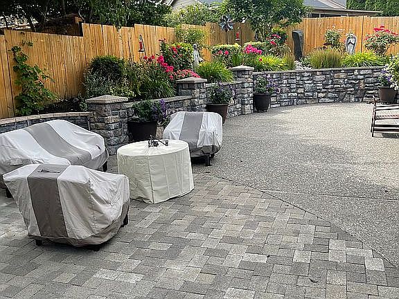 - ExteriorFeatures: Patio, Fenced, Porch, Yard, Garden, Dog Run, Water Feature, Tool Shed, RV Parking, Raised Beds