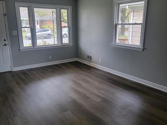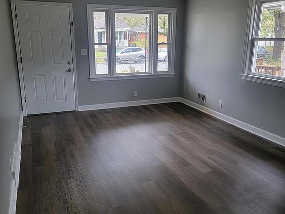 Wonderful 2 bed/1.5 bath all brick ranch home. This lovely home has been updated to include: New roof, new gutters and facia boards, new windows, freshly painted inside and out, new lighting throughout, new laminate wood flooring throughout, new ceiling fans, updated full bath (new tile flooring, new tile surround, new sink and cabinet, new lighting, new mirror), updated kitchen (new cabinets, pulls and countertops, new sink and faucet, new fridge and microwave, all appliances remain). The basement has been finished to include 2 more bedrooms with closets, a flex/computer area, and a living room area. The laundry is located in basement as well as a ton of storage. The detached, one-car garage boasts a new garage door and opener. The Seller is also offering a One Year Home Warranty!
