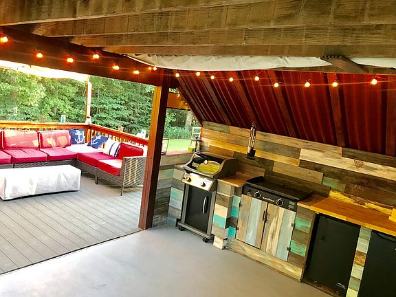 ~An ENTERTAINING PARADISE W/OUTDOOR KITCHEN Patio that opens to the walkout basement, Per the seller the home boast an outdoor kitchen and extended lower deck providing an additional 1100 sqft of indoor/outdoor living space...Ideal for Big Families, Large Family Gatherings, and HUGE Children's Parties~Bi level Decking With Wind Sails!!! Framed out Fire Pit to fit a SPACIOUS Farm Table for Dinner Parties~ PLAYGROUND,STORAGE SHED, and HAMMOCK~Top of the line Kitchen offering~BLACK STAINLESS APPLIANCES and GRANITE Counter-tops, wood floors throughout the first and second. BASEMENT w/Pool Table and Entertainment Area. Gas Fireplace featuring Stone and Slate~Tank-less water heater~NEW HVAC 1/2019