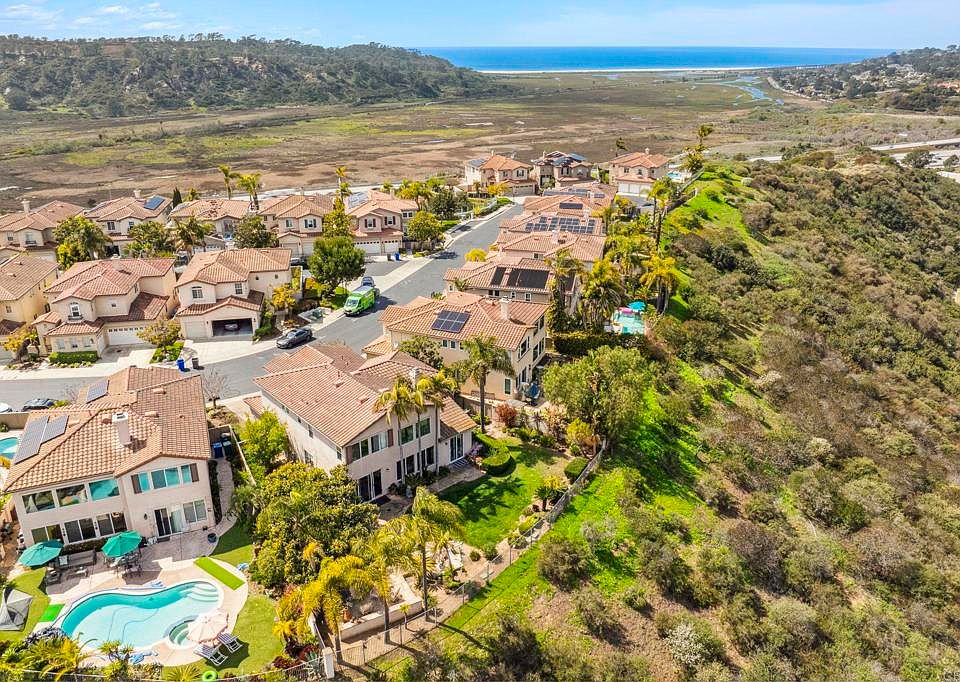 Perched atop a peaceful hill above the ocean in one of San Diego’s most coveted locations, this exceptional 4 bedroom, 4 bathroom home is nestled within the prestigious gated community of Torrey Hills. Situated on one of the largest lots in the neighborhood, this inviting home offers privacy, panoramic canyon views, and a thoughtfully designed floor plan for modern living. From the moment you arrive, you’re greeted by a gated paved courtyard, an expansive driveway, and lush landscaping that sets a tranquil tone. Inside, soaring ceilings and abundant natural light enhance the spacious layout, with refinished hardwood floors adding warmth and timeless elegance throughout. The main level includes a bedroom and full bath, ideal for guests, multigenerational living or a home office. The open-concept design seamlessly connects the formal living room, dining area, family room with cozy fireplace and built-ins, breakfast nook, and an oversized kitchen with an expansive center island, perfect for entertaining and everyday living. Upstairs, the primary suite is a private retreat, featuring a spa-like bath with a soaking tub, dual vanities, walk-in shower, and generous walk-in closet. Every window along the back of the home frames breathtaking canyon views, truly bringing the outdoors in. With an additional two bedrooms and full bathroom upstairs, there is more than enough room for all your family’s needs. A loft with built-in cabinets and desk offers extra space for work, creativity and organization. Finally, step outside to your own private backyard oasis, where the possibilities are endless. Enjoy a raised patio perfect for dining or relaxing while experiencing the serenity this rare amount of space provides. With plenty of features for entertaining and room to add a pool, this yard is truly something special. This home is located just minutes from the 2,000 acre Torrey Pines State Natural Reserve, one of the wildest stretches of land on the Southern California Coast. Close to award-winning schools, scenic trails, beaches, and world-class shopping and dining, this home offers the best of coastal San Diego living. Don’t miss this rare opportunity to own a premier property in one of San Diego’s most sought-after communities.
