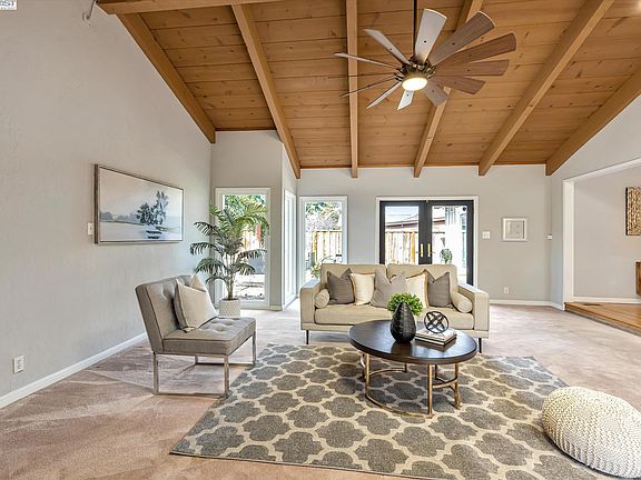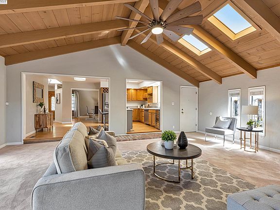 This inviting single-family home offers 3 bedrooms, 2 bathrooms, and 1700 sq ft of living space. The hall bathroom and laundry room have been completely renovated (with permits) to provide a modern look and feel, complete with Kohler tub, vanity, Toto toilets, and Italian wall and floor tiles. The home also features newer appliances such as the LG washer/dryer plus pedestal washer, wine fridge, LG Dual Gas Range, and tankless water heater. The impressive living room boasts a striking natural wood vaulted ceiling, bright skylights, and an eye-catching painted brick fireplace, providing the perfect space to cozy up or entertain guests. Step out into the yard and surround yourself with a large variety of fruit trees such as Meyer lemon, lime, yuzu, multi-grafted Asian pears, passionfruit, nectarines, and more! Other notable upgrades include: shiplap accent wall, Rachio smart sprinkler system, ELFA Closet system, tiled entryway, and refinished kitchen floors. Minutes to a variety of restaurants, groceries, HWY 880 and Dumbarton Bridge.